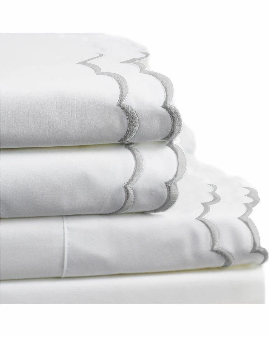 Melange Home Double Scalloped Embroidered Sheet Set Sheets Grey